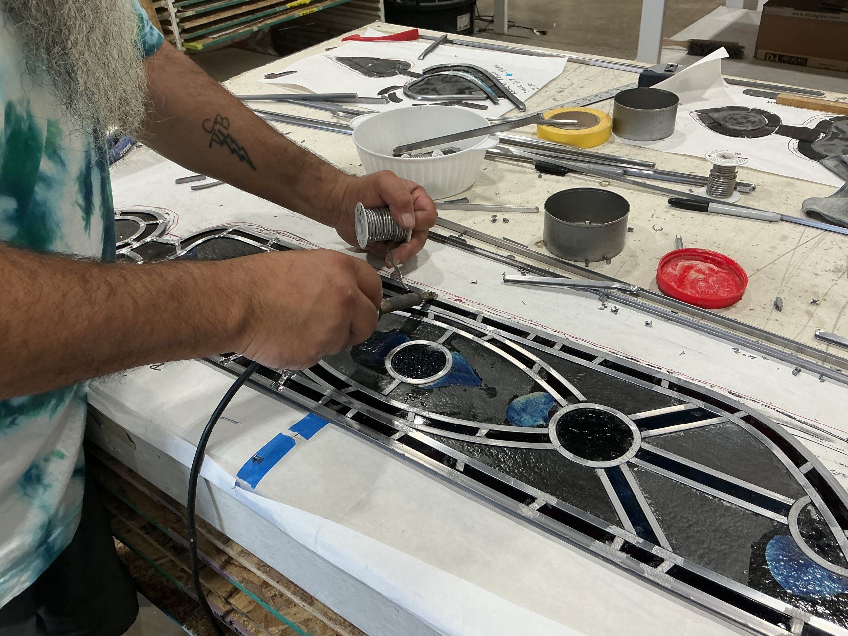 In the summer of 2025, Holy Communion embarked on a capital project to restore our beautiful stained glass windows. These windows are priceless and over the years, the previous protective covering had yellowed and prevented the windows from being seen from the outside. In addition, the covering did not allow good air flow resulting in one of the windows (the east transept window) warping requiring it to be completely removed and returned to Willet Studios for extensive repair. All of the windows have been recovered and the difference in the light entering the church is astounding! Enjoy these pictures of the window repair process